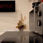 Free Netflix & Wi-Fi Modern Suite Roiano van 45 m^2 biedt een zitruimte en is ingericht met een bank en een bureau, en moderne gemakken zoals een flatscreen TV met satellietzenders en TV met meerdere kanalen. Dit appartement biedt 1 slaapkamer aan. Free Netflix & Wi-Fi Modern Suite Roiano biedt 1 badkamer met een apart toilet en een douche, evenals een haardroger en een badmuts.